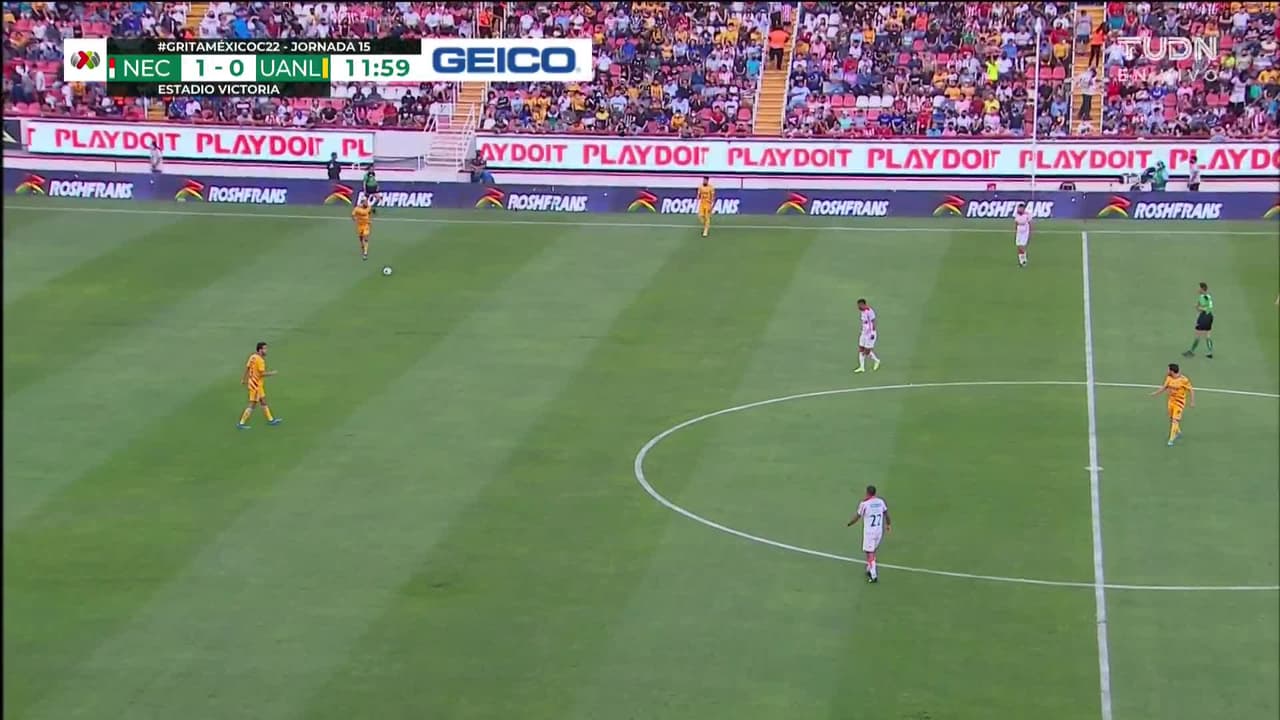 Tiro atajado junto al lado derecho de la portería. Fernando Madrigal (Necaxa) Disparo con la derecha desde más de 30 metros. Asistencia de Agustín Oliveros.