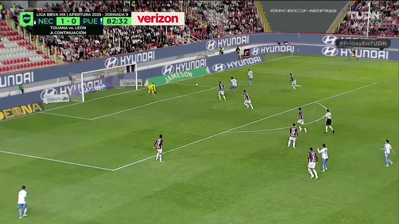 Tiro atajado junto al lado derecho de la portería. Fernando Monárrez (Puebla) zurdazo desde fuera del área. Asistencia de Franco Moyano.