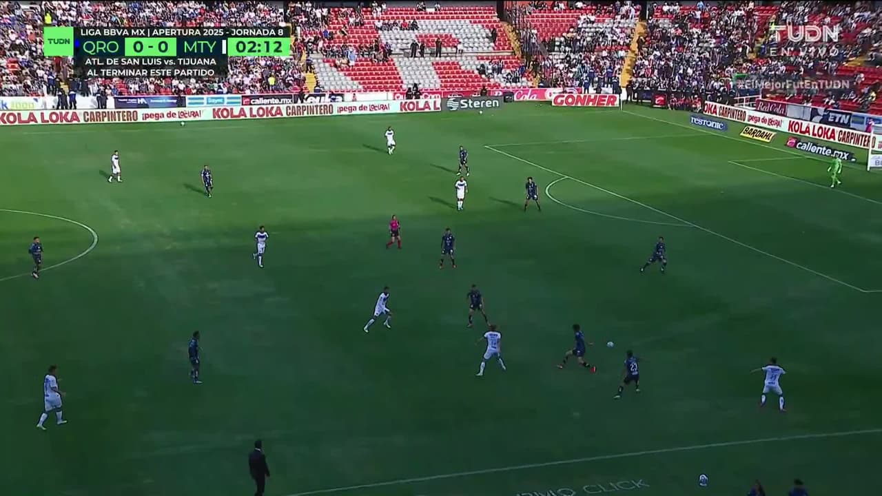 Tiro atajado. Fidel Ambríz (Monterrey) zurdazo desde fuera del área.