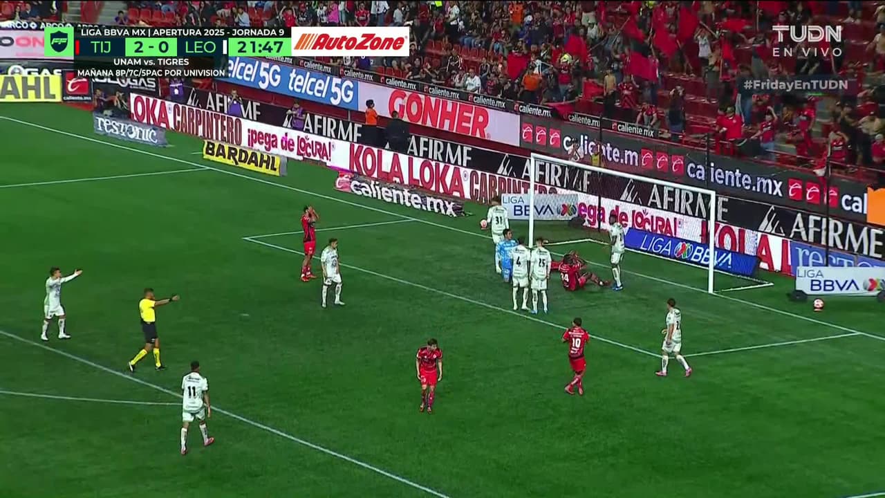 Tiro atajado. Frank Boya (Club Tijuana) Disparo con la derecha desde muy cerca.