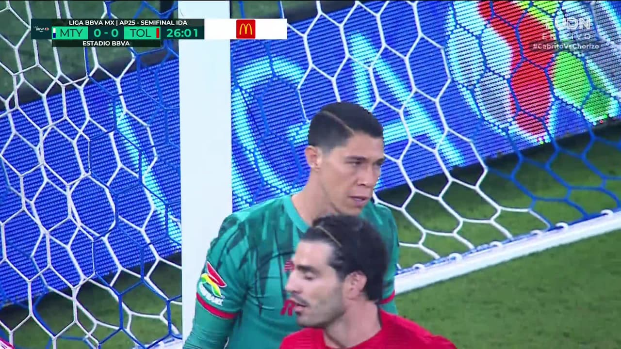 Tiro atajado. Gerardo Arteaga (Monterrey) zurdazo desde el lado izquierdo dentro del área.