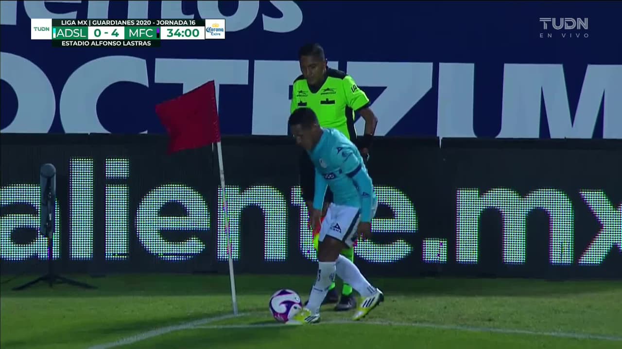Tiro atajado junto al lado derecho de la portería. Germán Berterame (Atlético San Luis) Disparo con la derecha desde fuera del área. Asistencia de Jorge Sánchez.