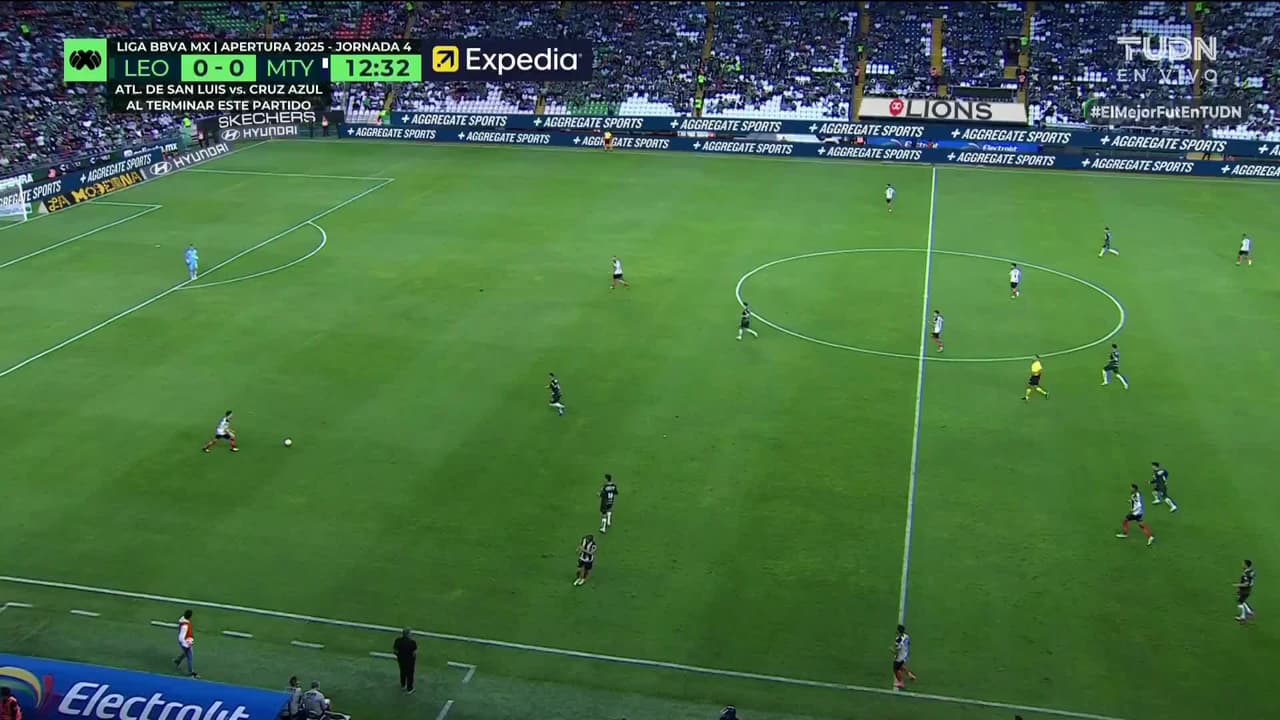 Tiro atajado raso al centro del arco. Germán Berterame (Monterrey) Disparo con la derecha desde el lado derecho dentro del área. Asistencia de Ricardo Chávez pase largo.