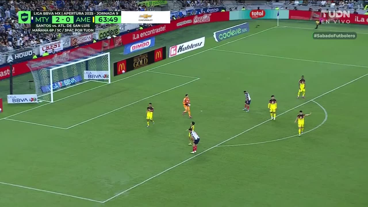 Tiro atajado. Germán Berterame (Monterrey) zurdazo desde fuera del área.