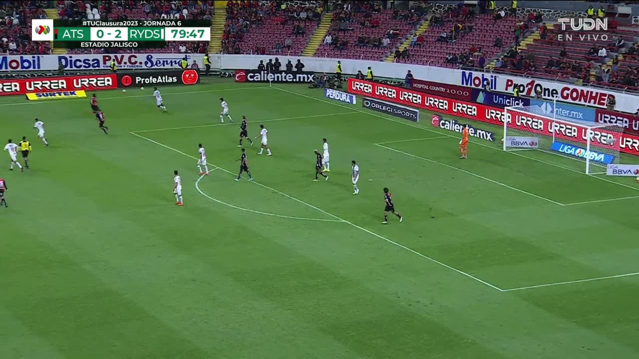 Tiro atajado junto al lado derecho de la portería. Germán Berterame (Monterrey) Disparo con la derecha desde el lado derecho dentro del área.