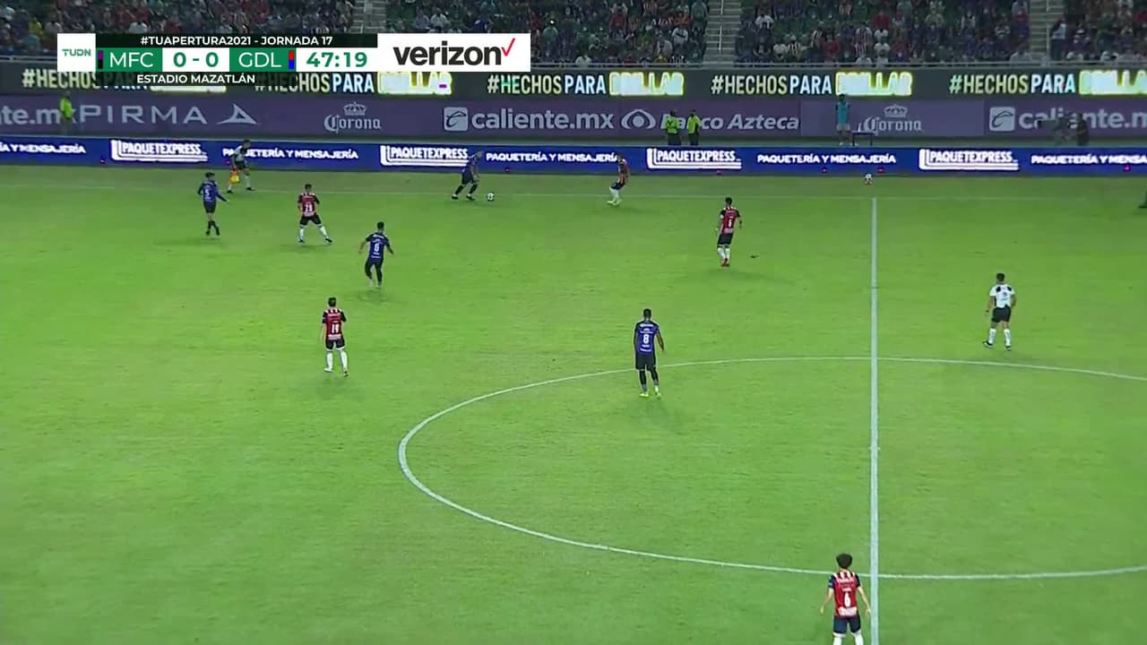Tiro atajado por abajo a la izquierda. Gonzalo Freitas (Mazatlán FC) Disparo con la derecha desde fuera del área. Asistencia de Nicolás Díaz.
