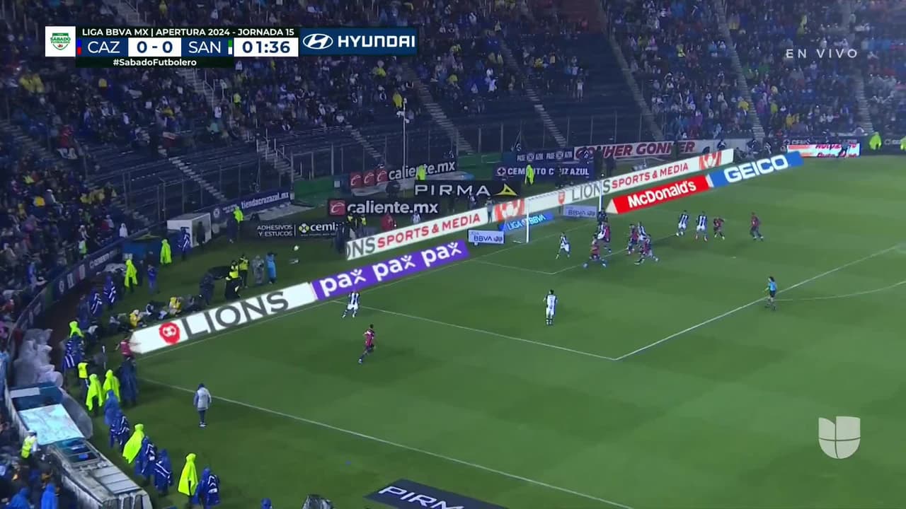Tiro atajado raso al centro del arco. Gonzalo Piovi (Cruz Azul) Disparo con la derecha desde el centro del área.