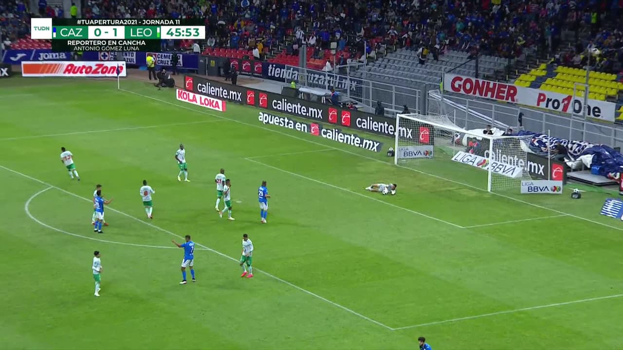 Tiro atajado junto al lado derecho de la portería. Guillermo Fernández (Cruz Azul) Disparo con la derecha desde fuera del área. Asistencia de Orbelín Pineda.