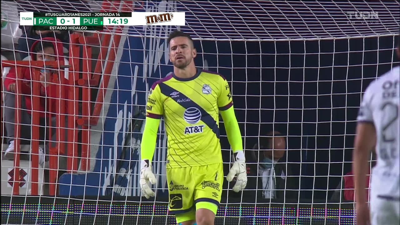 Tiro atajado Por arriba en el centro del arco. Gustavo Cabral (Pachuca) disparo de cabeza desde el centro del área. Asistencia de Kevin Álvarez.