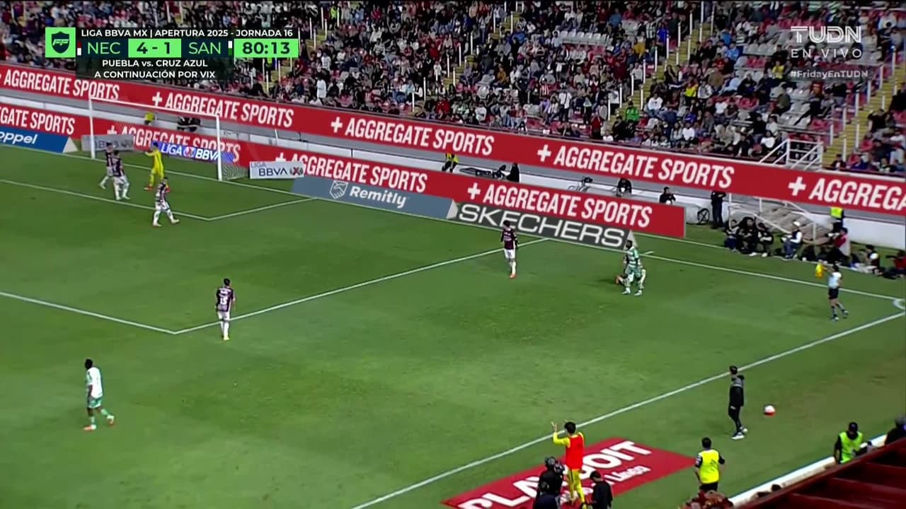 Tiro atajado junto al lado derecho de la portería. Haret Ortega (Santos Laguna) zurdazo desde el centro del área. Asistencia de Aldo López.