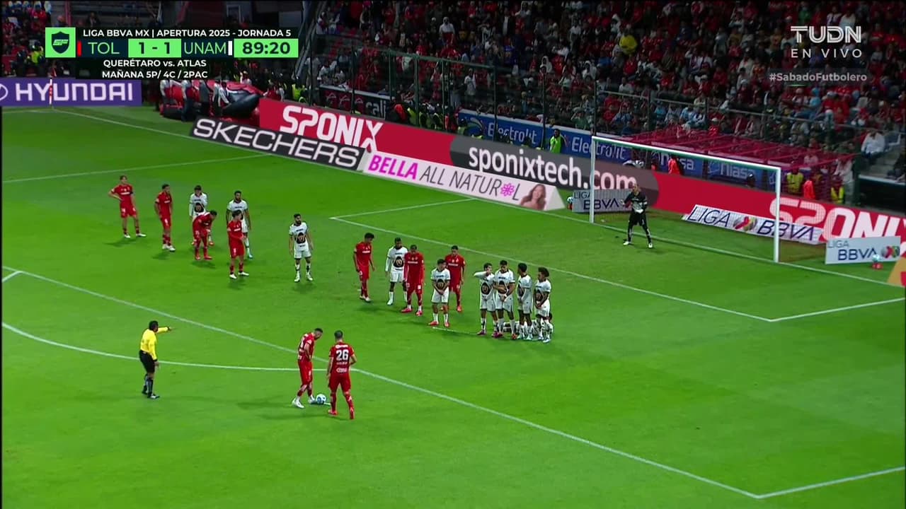 Tiro atajado raso al centro del arco. Héctor Herrera (Toluca) Disparo con la derecha desde fuera del área.