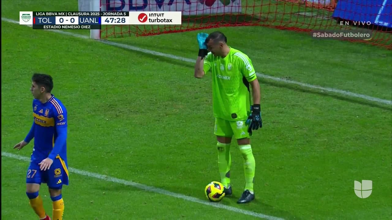 Tiro atajado raso al centro del arco. Helinho (Toluca) zurdazo desde fuera del área. Asistencia de Jesús Gallardo.