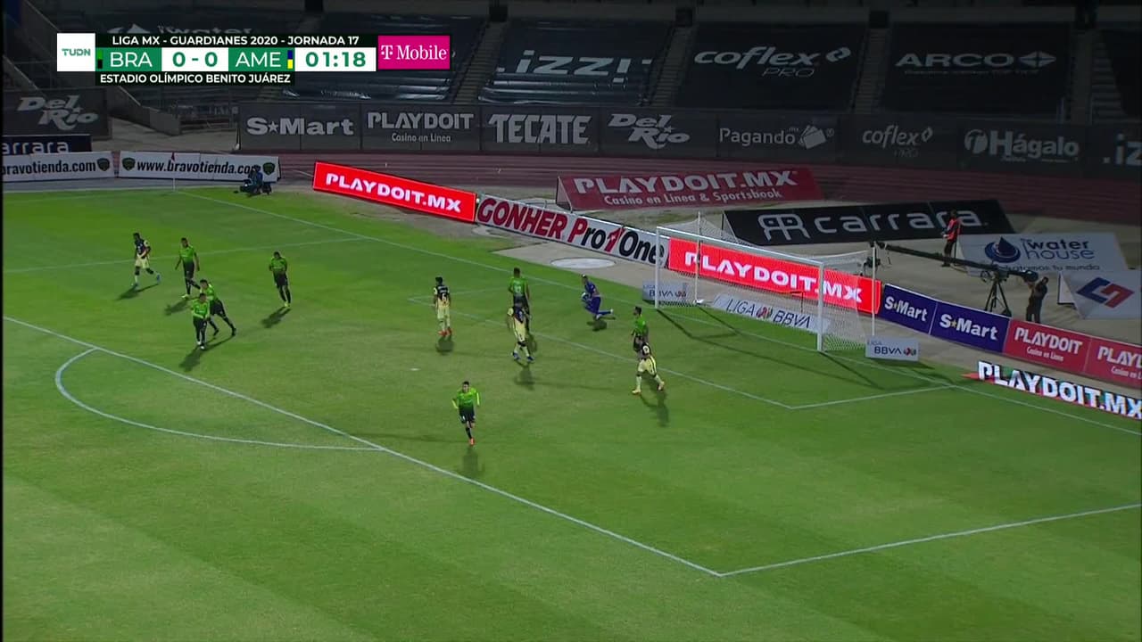 Tiro atajado raso al centro del arco. Henry Martín (América) Disparo con la derecha desde el lado izquierdo dentro del área. Asistencia de Sergio Díaz con un pase de cabeza.