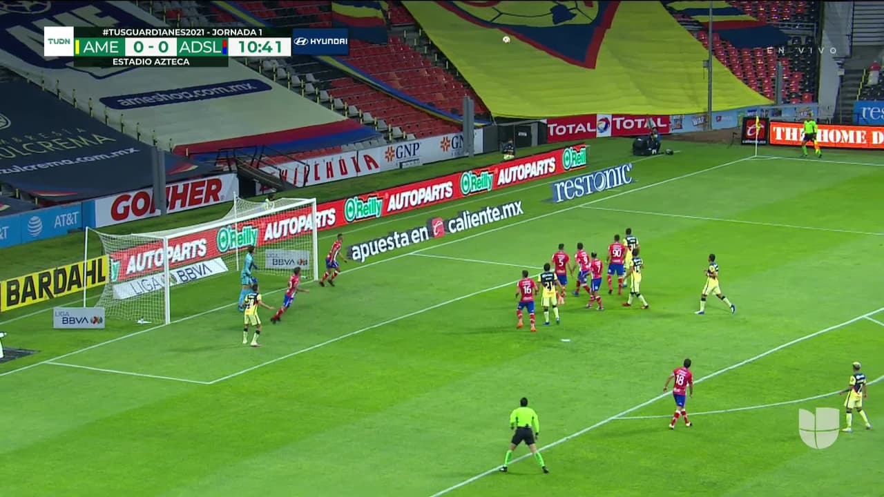 Tiro atajado junto al lado derecho de la portería. Henry Martín (América) zurdazo desde muy cerca. Asistencia de Leonardo Suárez con un centro al área.