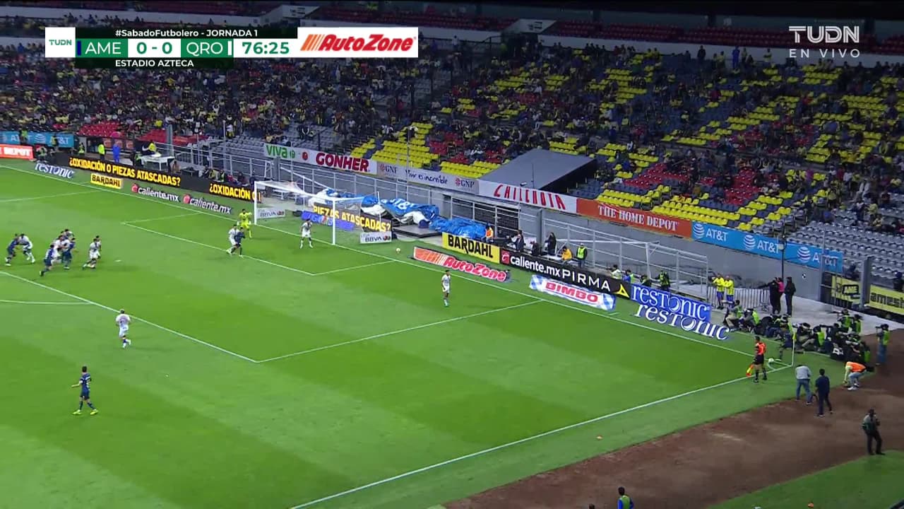 Tiro atajado por abajo a la izquierda. Henry Martín (América) disparo de cabeza desde el centro del área. Asistencia de Sebastián Cáceres con un centro al área.