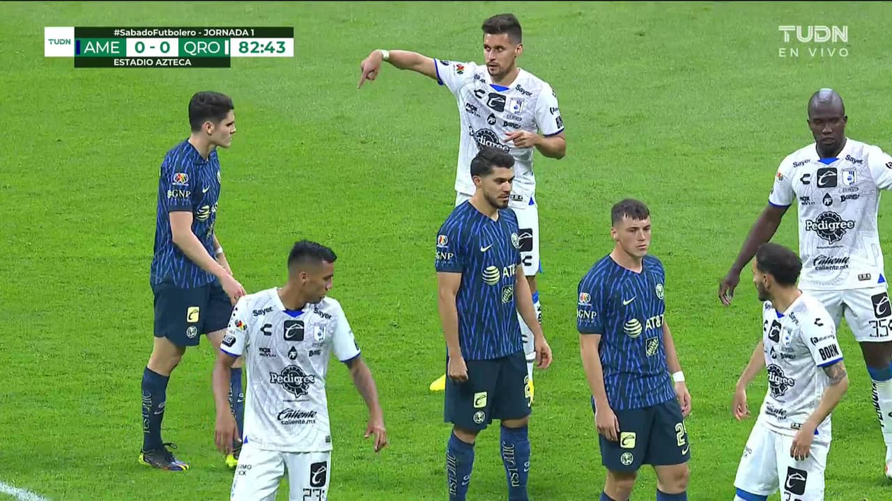 Tiro atajado Por arriba en el centro del arco. Henry Martín (América) disparo de cabeza desde el centro del área. Asistencia de Leonardo Suárez con un centro al área.