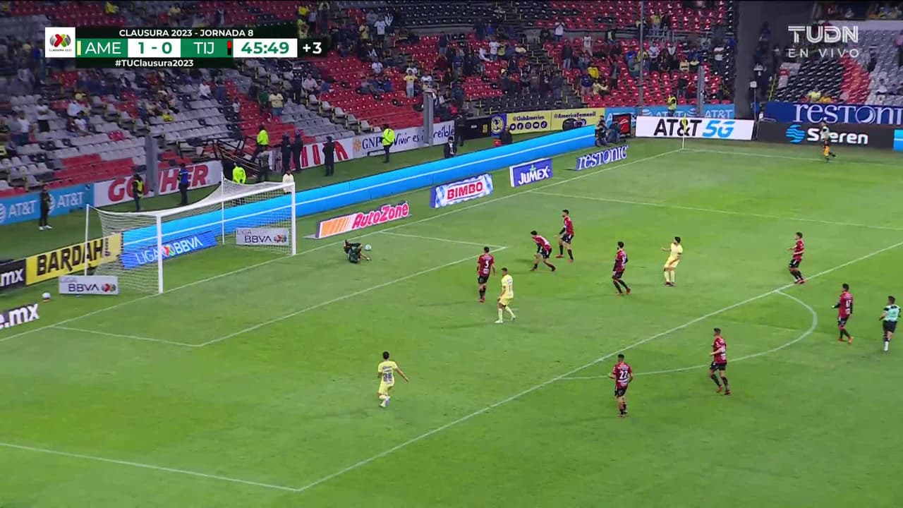 Tiro atajado raso al centro del arco. Henry Martín (América) Disparo con la derecha desde el centro del área. Asistencia de Diego Valdés.