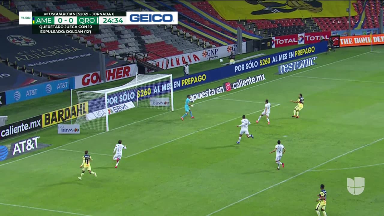 Tiro atajado junto al lado derecho de la portería. Henry Martín (América) Disparo con la derecha a quemarropa desde el lado derecho. Asistencia de Sebastián Córdova.