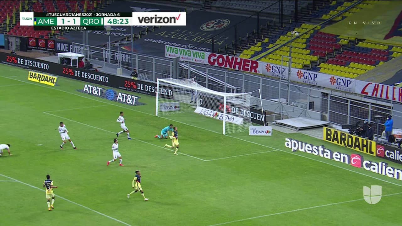 Tiro atajado junto al lado derecho de la portería. Henry Martín (América) Disparo con la derecha desde fuera del área.