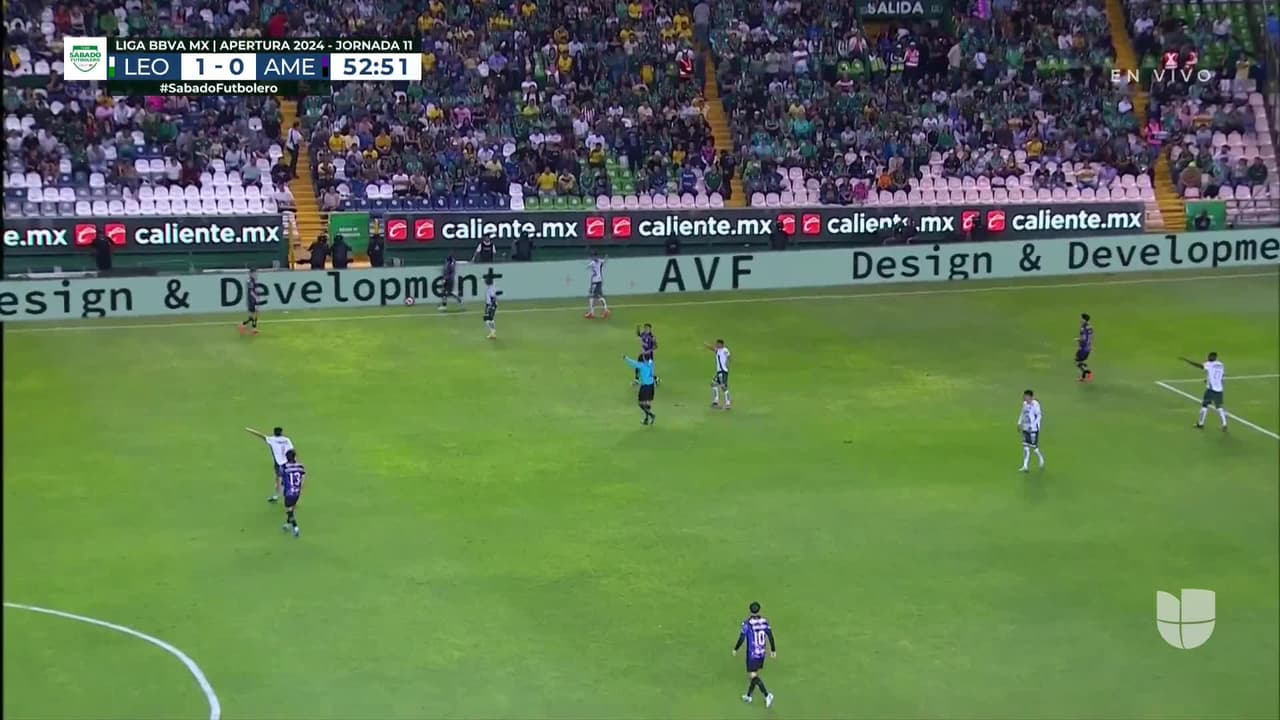 Tiro atajado. Henry Martín (América) Disparo con la derecha desde fuera del área.