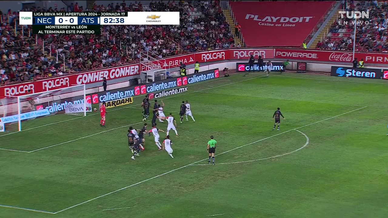 Tiro atajado. Heriberto Jurado (Necaxa) zurdazo desde el lado izquierdo dentro del área.