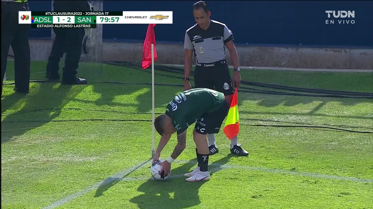 Tiro atajado por abajo a la izquierda. Hugo Rodríguez (Santos Laguna) disparo de cabeza desde el centro del área. Asistencia de Fernando Gorriarán con un centro al área.
