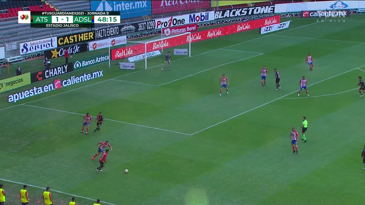 Tiro atajado raso al centro del arco. Jairo Torres (Atlas) Disparo con la derecha desde fuera del área. Asistencia de Diego Barbosa.