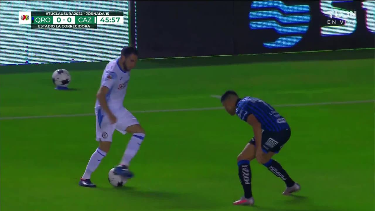 Tiro atajado. Ignacio Rivero (Cruz Azul) Disparo con la derecha desde fuera del área.