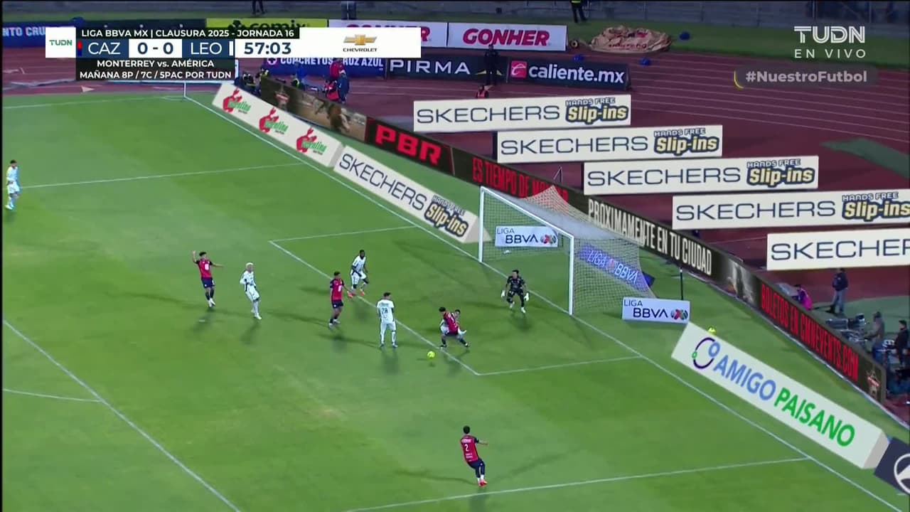 Tiro atajado. Ignacio Rivero (Cruz Azul) Disparo con la derecha desde el lado derecho dentro del área.
