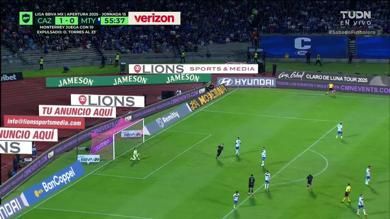 Tiro atajado. Ignacio Rivero (Cruz Azul) Disparo con la derecha desde fuera del área.