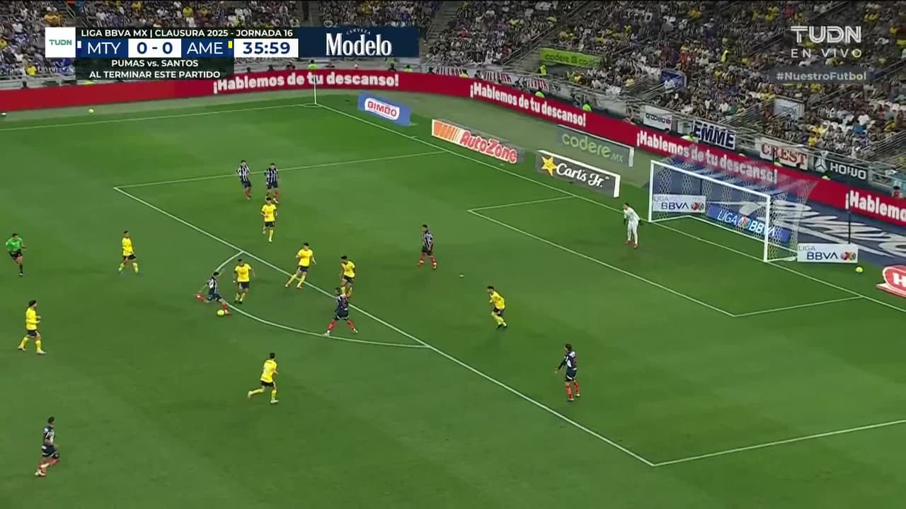 Tiro atajado. Iker Fimbres (Monterrey) Disparo con la derecha desde fuera del área.