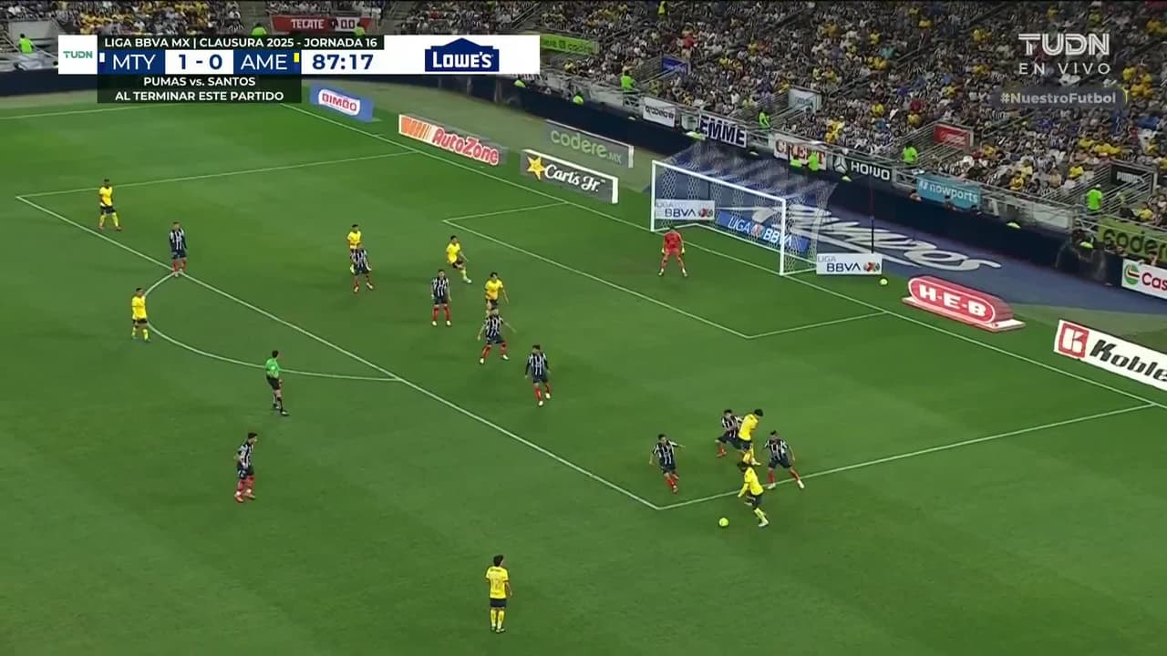 Tiro atajado. Iker Fimbres (Monterrey) Disparo con la derecha desde fuera del área.