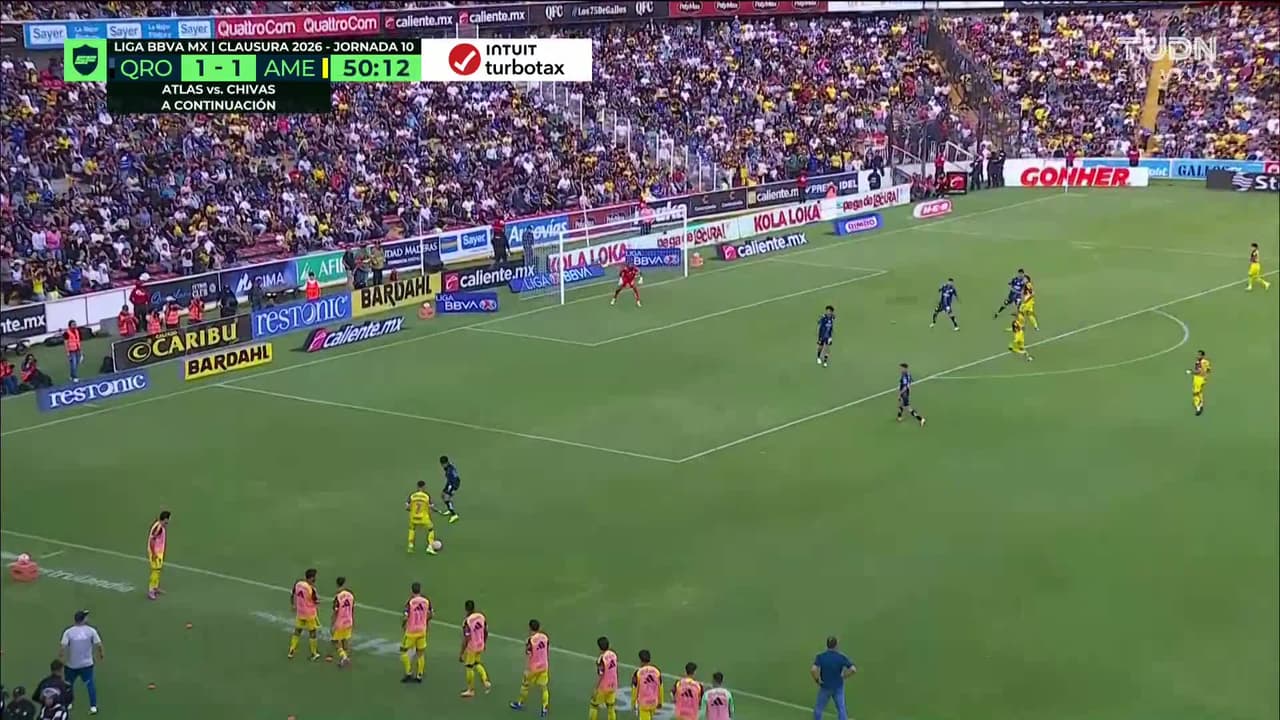Tiro atajado. Israel Reyes (América) Disparo con la derecha desde fuera del área.