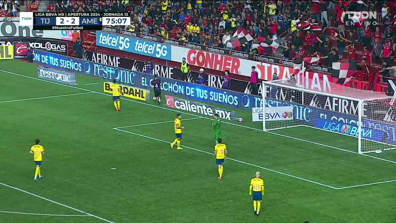 Tiro atajado por abajo a la izquierda. Iván Tona (Club Tijuana) Disparo con la derecha desde fuera del área. Asistencia de Diego Barbosa.