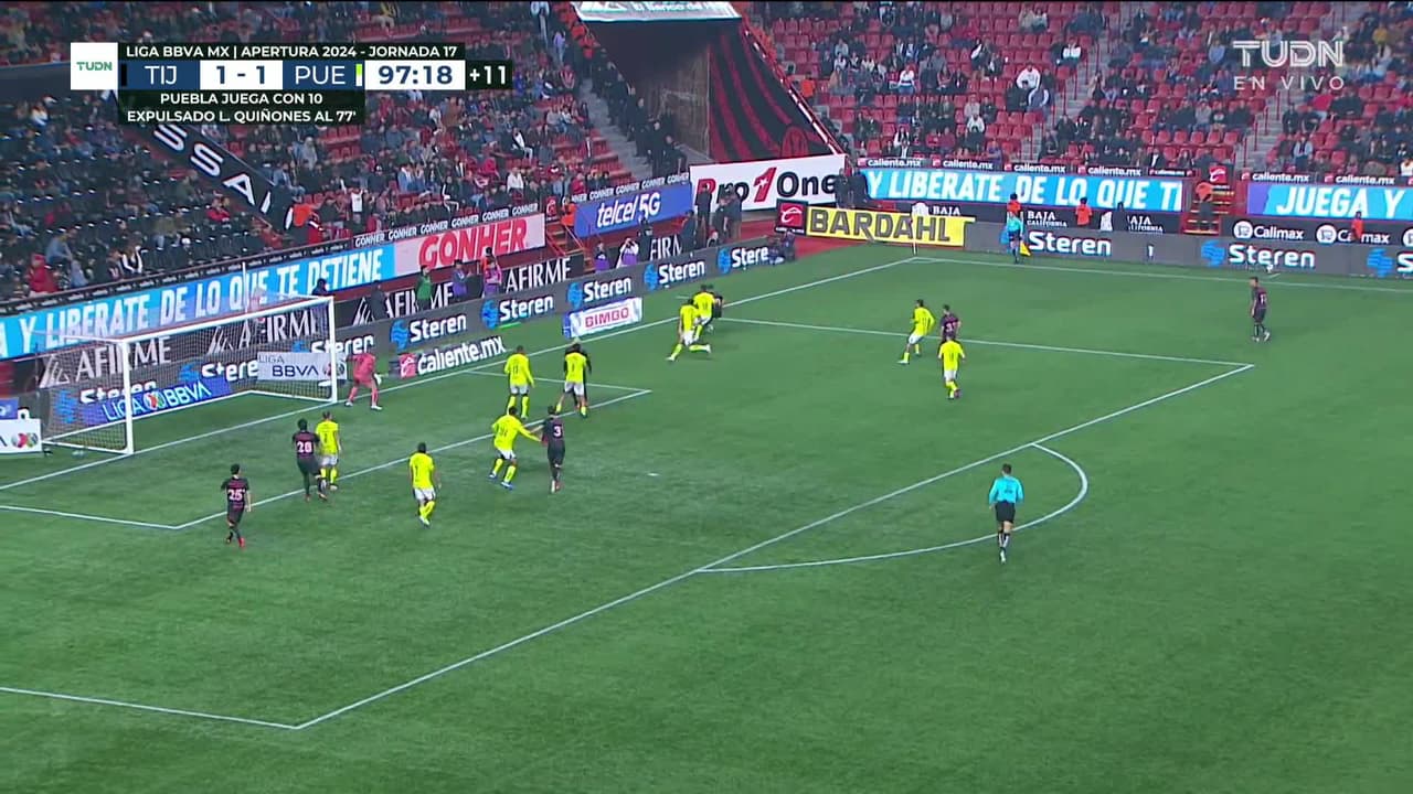 Tiro atajado. Iván Tona (Club Tijuana) zurdazo desde fuera del área.