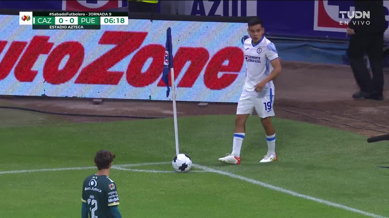 Tiro atajado junto al lado derecho de la portería. Ivo Vázquez (Puebla) zurdazo desde fuera del área. Asistencia de Gustavo Ferrareis pase largo.