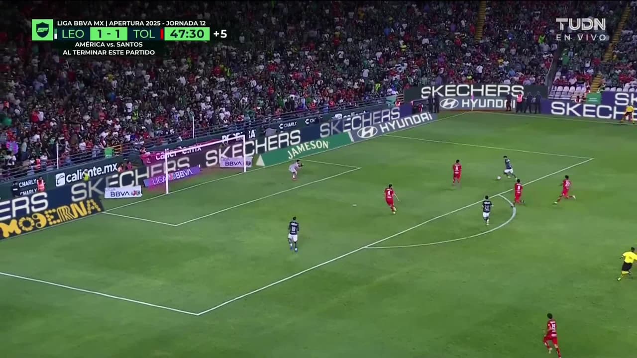 Tiro atajado junto al lado derecho de la portería. James Rodríguez (León) Disparo con la derecha desde el centro del área. Asistencia de Alfonso Alvarado.