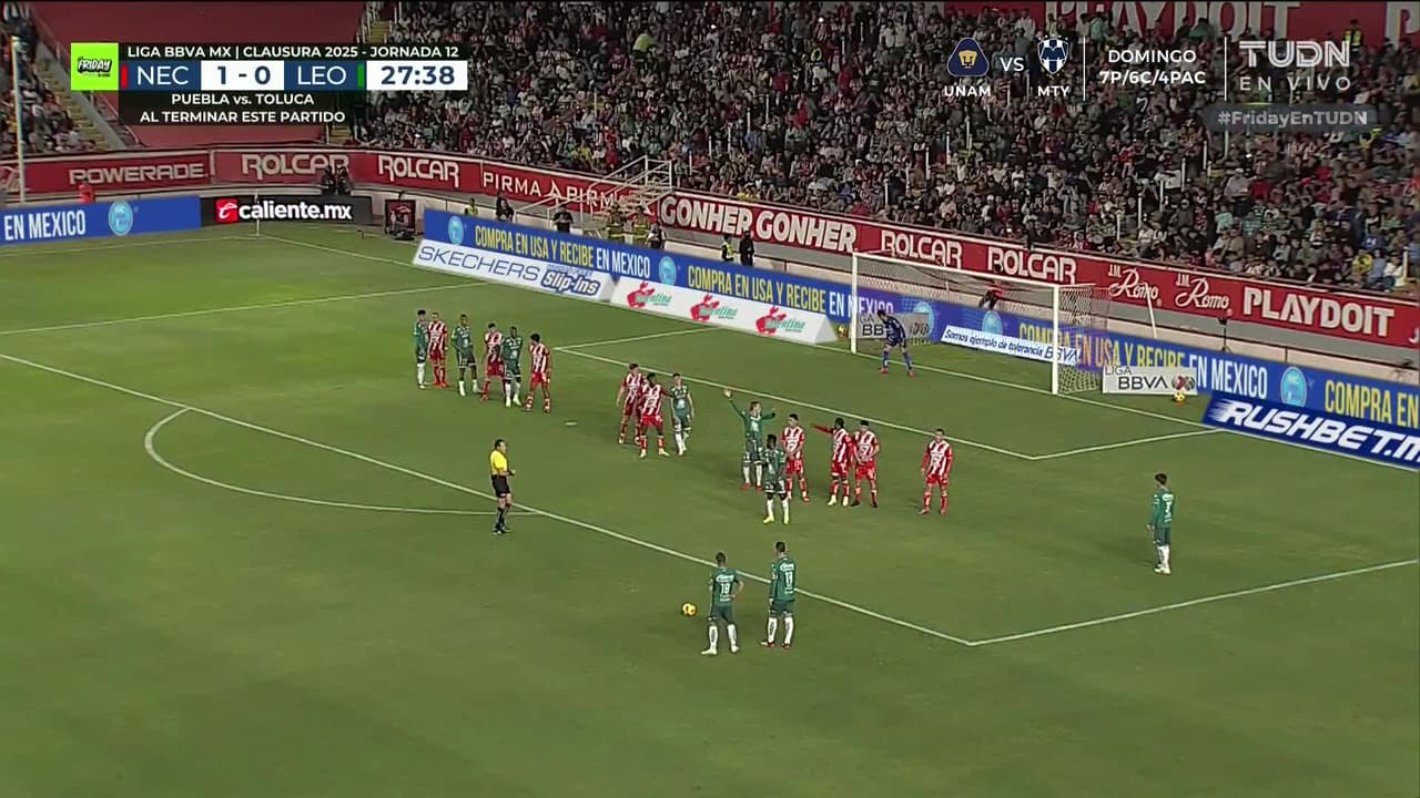 Tiro atajado junto al lado derecho de la portería. James Rodríguez (León) zurdazo desde fuera del área.