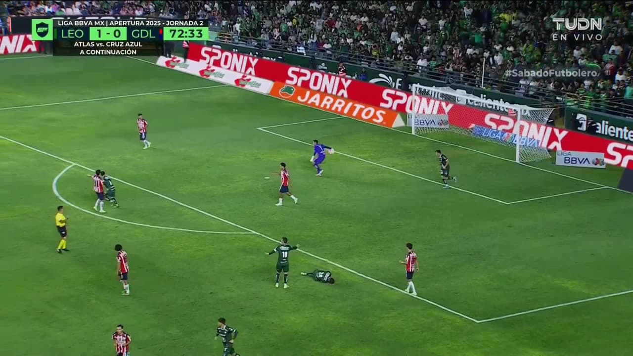 Tiro atajado junto al lado derecho de la portería. James Rodríguez (León) zurdazo desde fuera del área. Asistencia de Rodrigo Echeverría.