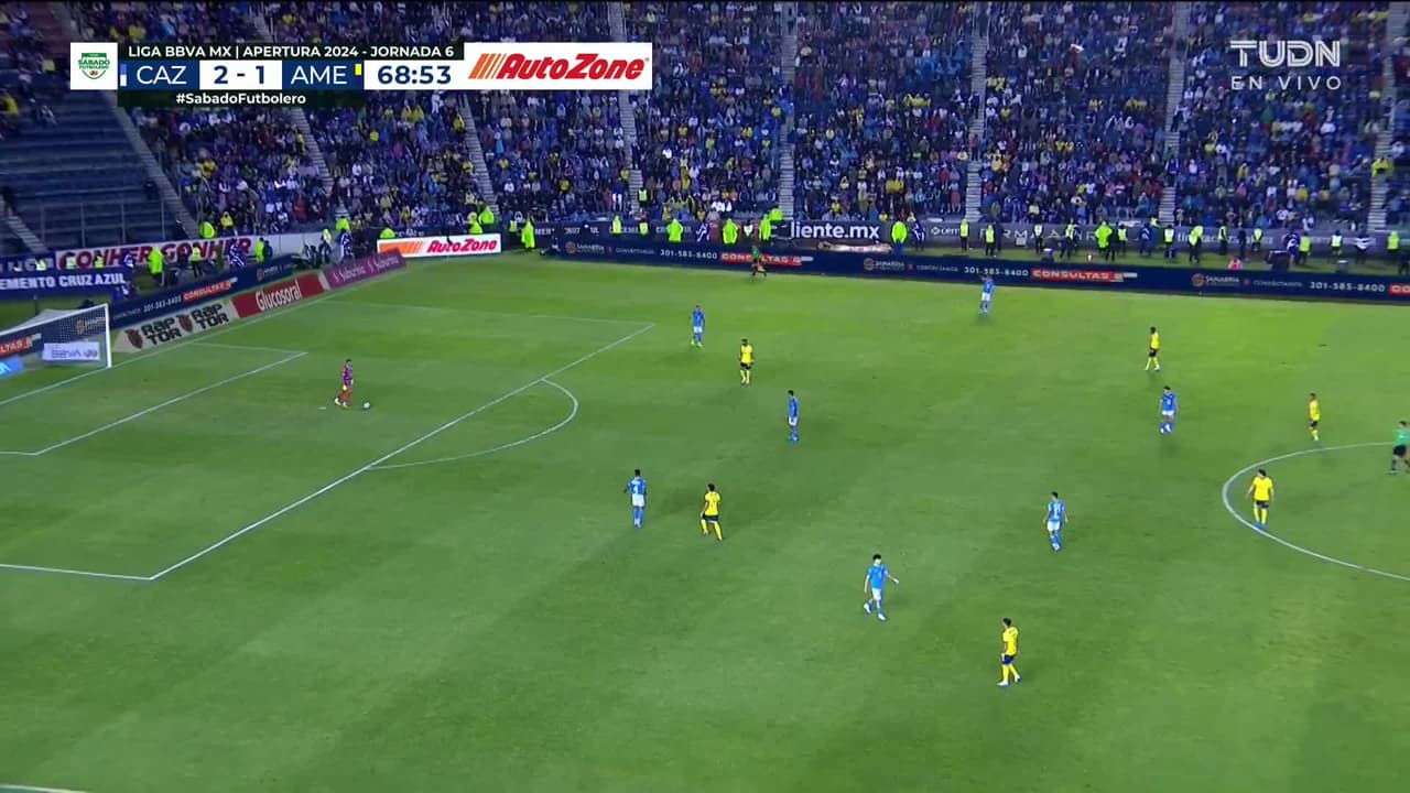 Tiro atajado raso al centro del arco. Javairô Dilrosun (América) zurdazo desde fuera del área. Asistencia de Álvaro Fidalgo.