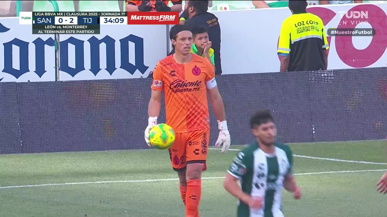 Tiro atajado Por arriba en el centro del arco. Javier Abella (Santos Laguna) Disparo con la derecha desde fuera del área.
