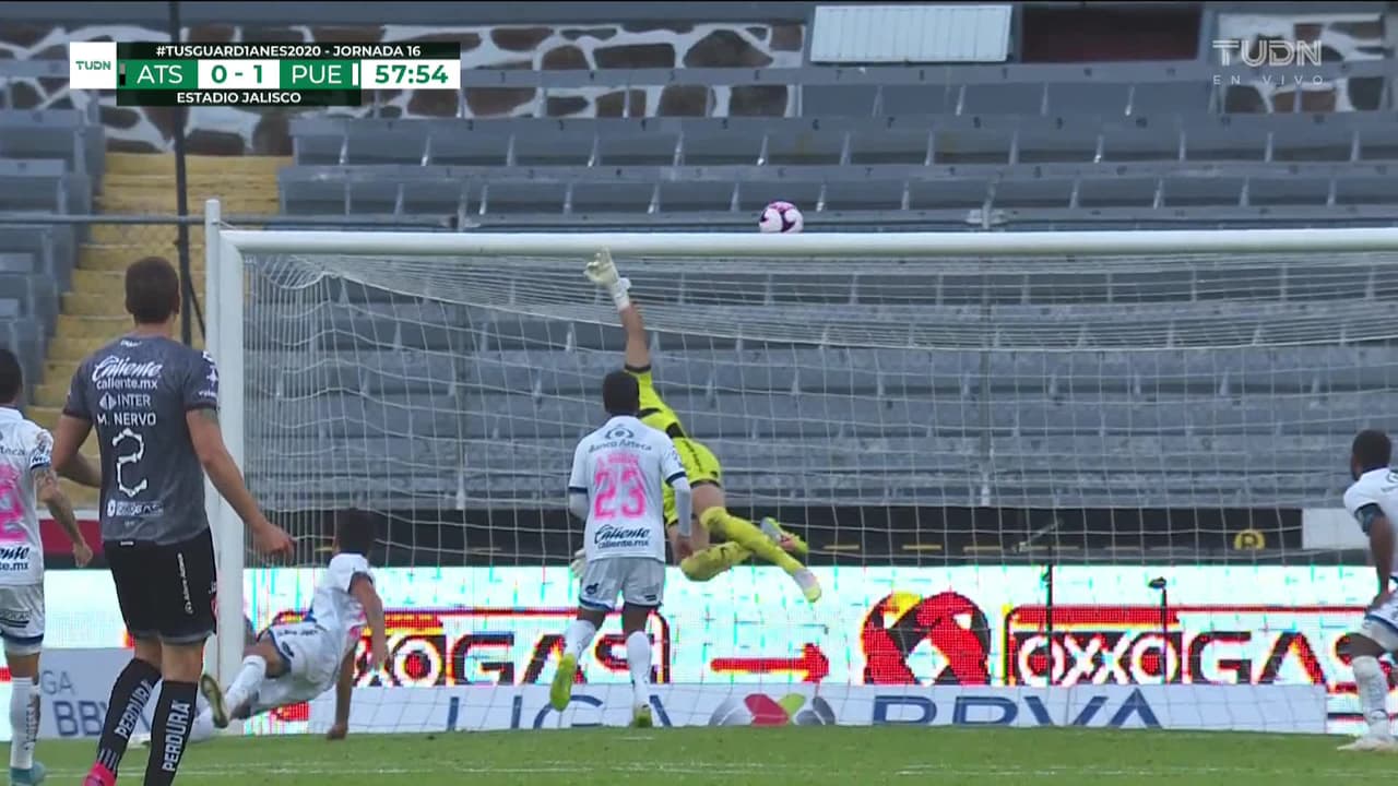 Tiro atajado Por arriba en el centro del arco. Javier Correa (Atlas) disparo de cabeza desde el centro del área. Asistencia de Víctor Malcorra con un centro al área.