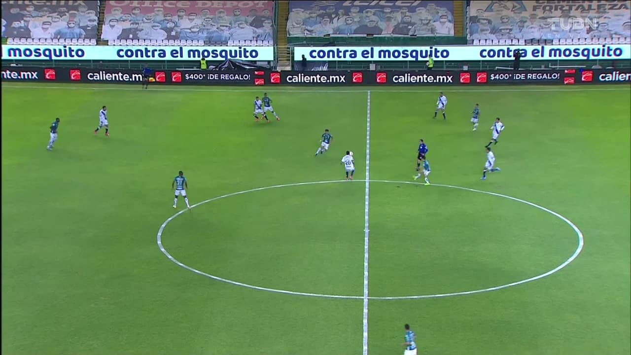 Tiro atajado raso al centro del arco. Jean Meneses (León) Disparo con la derecha desde fuera del área. Asistencia de Fernando Navarro.