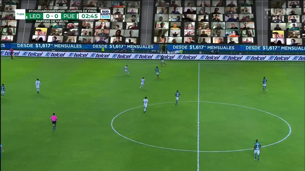 Tiro atajado. Jean Meneses (León) Disparo con la derecha desde fuera del área.