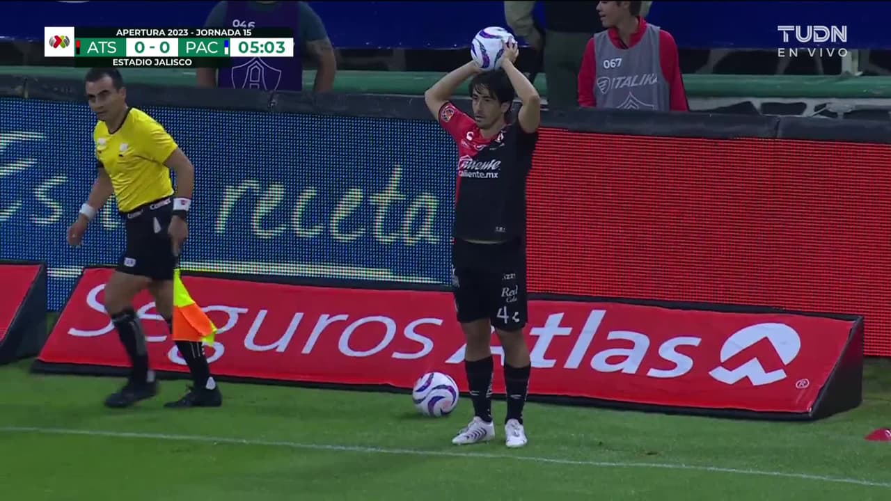 Tiro atajado raso al centro del arco. Jeremy Márquez (Atlas) zurdazo desde el lado derecho dentro del área. Asistencia de Jordy Caicedo.