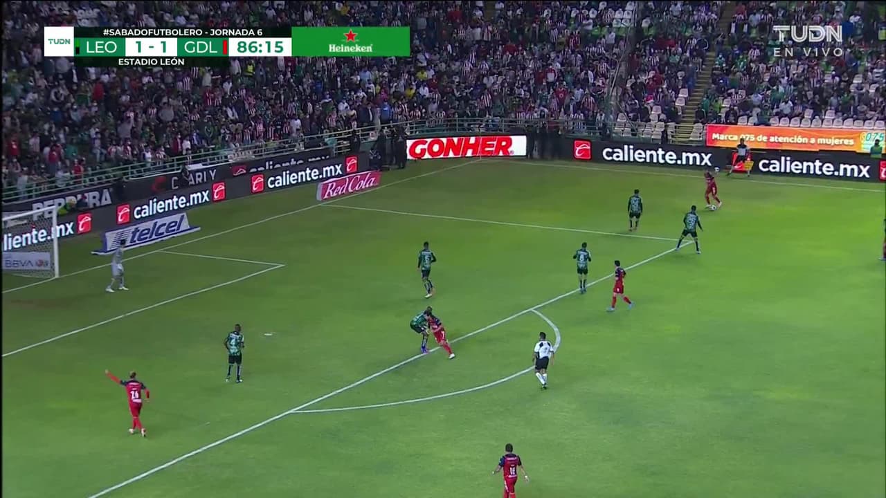 Tiro atajado junto al lado derecho de la portería. Jesús Angulo (Chivas ) zurdazo desde el centro del área. Asistencia de José Macías.