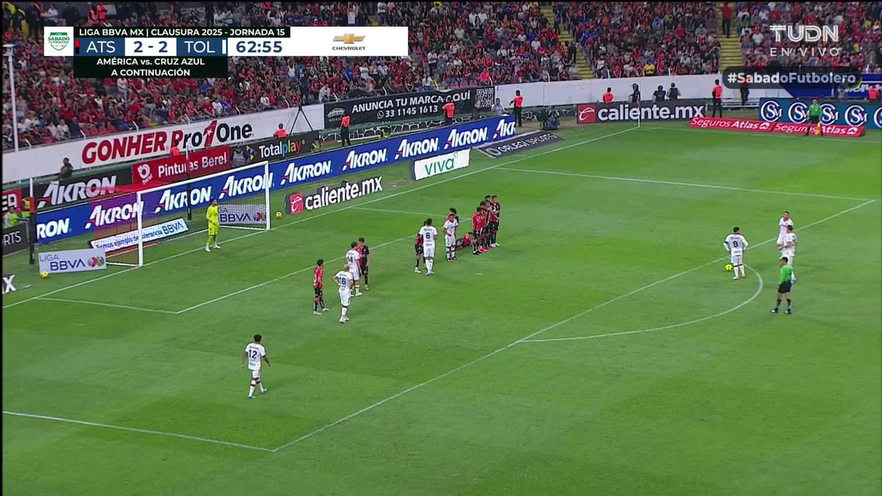 Tiro atajado por abajo a la izquierda. Jesús Angulo (Toluca) zurdazo desde fuera del área.