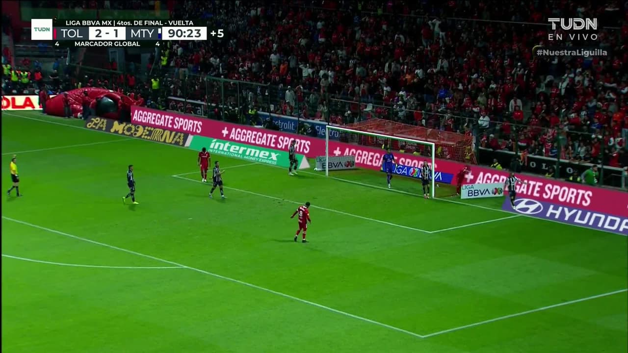 Tiro atajado por abajo a la izquierda. Jesús Gallardo (Toluca) zurdazo sin ángulo desde la izquierda. Asistencia de Marcel Ruíz.