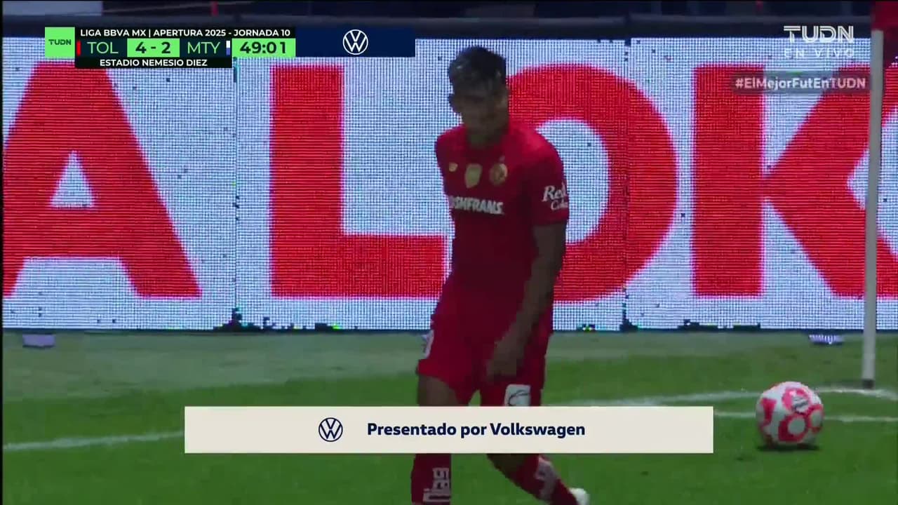 Tiro atajado raso al centro del arco. Jesús Gallardo (Toluca) zurdazo desde el lado izquierdo dentro del área. Asistencia de Alexis Vega.