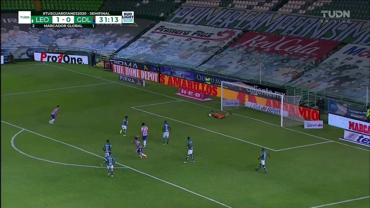 Tiro atajado por abajo a la izquierda. Jesús Molina (Chivas ) Disparo con la derecha desde el centro del área. Asistencia de Uriel Antuna con un centro al área.